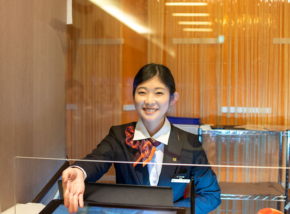 私はアルピナのいいところは、素晴らしいチームワークを持っているところだと感じています。 チェックイン時の作業に時間がかかり、お客様をお待たせしてしまいそうになったとき、他のスタッフが様子を見て作業のフォローに入って下さるので、より速いスピードで仕事を進めることができます。フロントが並んでいる時には、ロビー立ちのスタッフにアイコンタクトで館内案内をお願いするなどして、先輩・後輩関係なく、スタッフが一丸となってチームワークを発揮します。