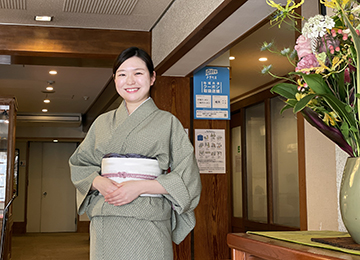 私は大学で英語の勉強に励んでいました。英語の会話や文法などももちろんですが、語学力以上に大学で身についたのは、コミュニケーションをとろうとする挑戦の心です。様々な国の人と出会い、様々な文化を知ったことで自分らしく生きることの大切さを学びました。そのおかげで、今は自分らしく行動をすることに誇りを持てます。旅館での仕事は大変なことも多いですが、自分らしく笑顔で明るくお客様と接する毎日はとても充実しています。毎日明るく過ごしたい方や人との関わりが好きな方、自分らしく働きたい方にとてもおすすめです!