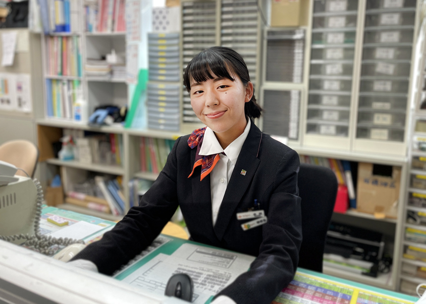 フロントに立つだけでなく、パソコンを使った仕事や電話対応などの 業務も行う為、慣れないことや覚えることも多いですが、臨機応変な 対応力を身につけることが出来ます。学んでは、失敗し、学び直すことの 積み重ねにより少しずつ自己成長を実感できる日々です。 また、そんな未熟な自分を温かく受け入れ、根気強く指導して下さる 先輩方にもとても感謝しています。